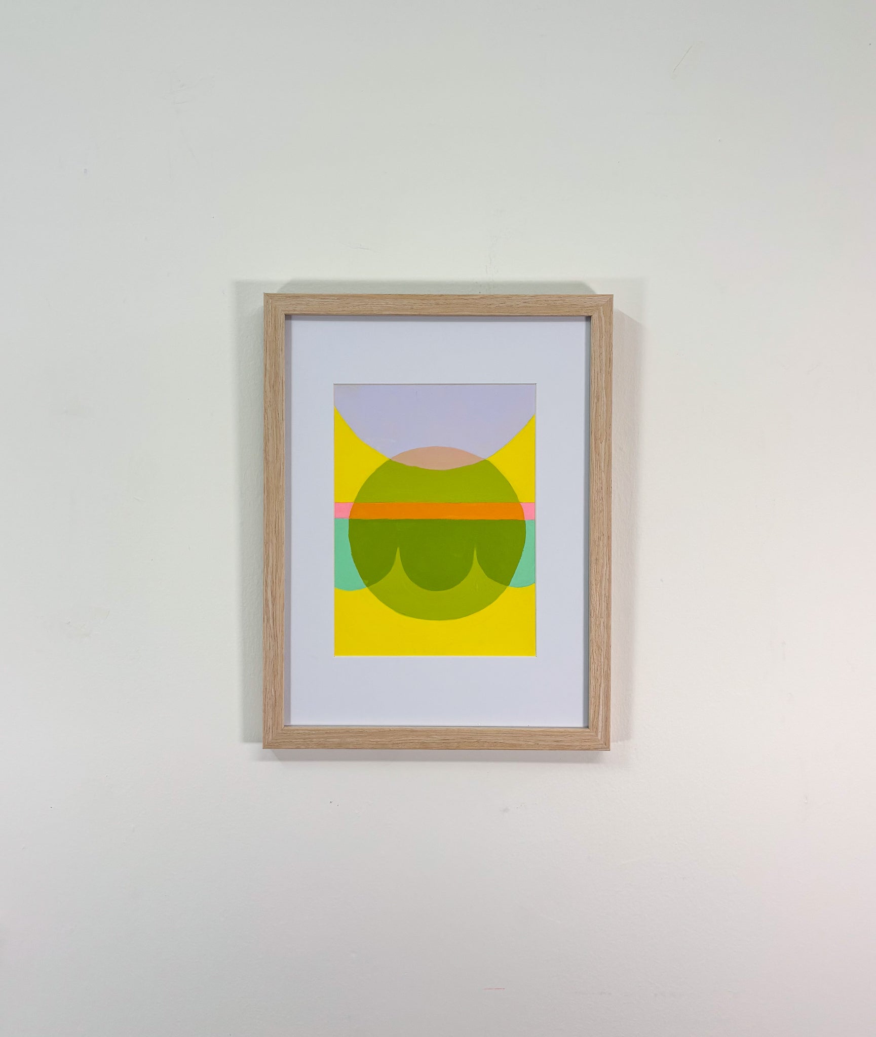 6x8 mixed paint media on paper, matted and framed in wood, copyright Julia Deckman 2025